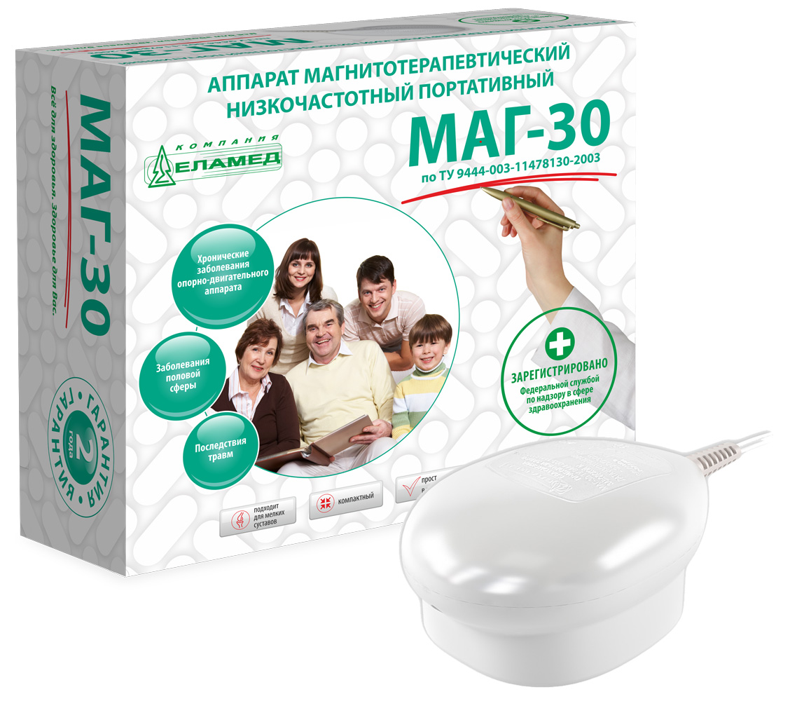 Магнитотерапевтический низкочастотный портативный аппарат МАГ-30 предназначен для оказания терапевтического воздействия на организм человека переменным неоднородным магнитным полем.