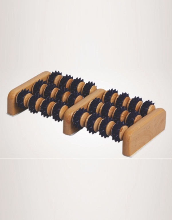 Массажер для ног выполнен из дерева, валики имеют пластиковое покрытие. Обеспечивает умеренное массажное воздействие на стопу. Предназначен для рефлексогенного воздействия на мягкие ткани тела, улучшает кровоток, проводит оздоровительную нейростимуляцию, восстанавливает обмен веществ мягких тканей тела человека в зоне воздействия. Эффективен при поверхностном и глубоком рефлексогенном воздействии на подошву стоп. Вы можете заниматься домашними делами и массировать стопы. Десяти минут вполне достаточно для улучшения самочувствия, снятия болевого синдрома и усталости. При более длительном воздействии происходит релаксация мышц стопы, улучшение кровотока и лимфодренаж.