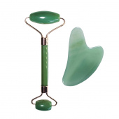Массажер-роллер для лица и скребок Гуаша из нефрита
