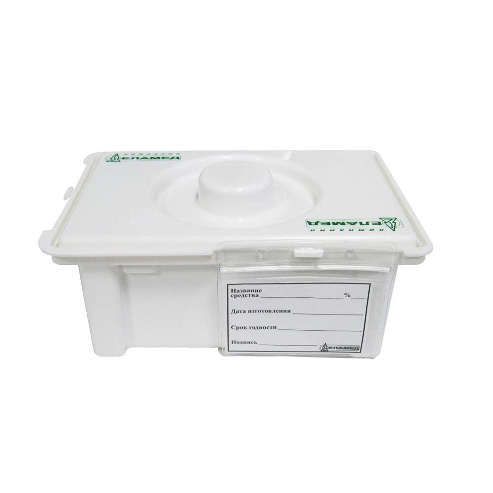 Пластиковый контейнер предназначен для предстерилизационной очистки (ПСО), химической дезинфекции и стерилизации медицинских (шприцев, термометров, фрез и пр.), а также маникюрного, парикмахерского инструмента. Представляет собой ванночку с крышкой, в которую наливается дезинфицирующее средство или моющий раствор. Внутри расположен перфорированный поддон, в который закладываются инструменты для обработки, обеспечивающий их бесконтактную выемку из дезинфицирующих или моющих растворов, слив, а также промывку и споласкивание. Для полного погружения легковсплываемых изделий лоток комплектуется утопителем. Контейнер изготавливается из нетоксичных, химически стойких полимерных материалов. Защищает от токсичности при проведении дезинфекции наличие плотно прилегающей крышки, предотвращающей распространение вредных паров.