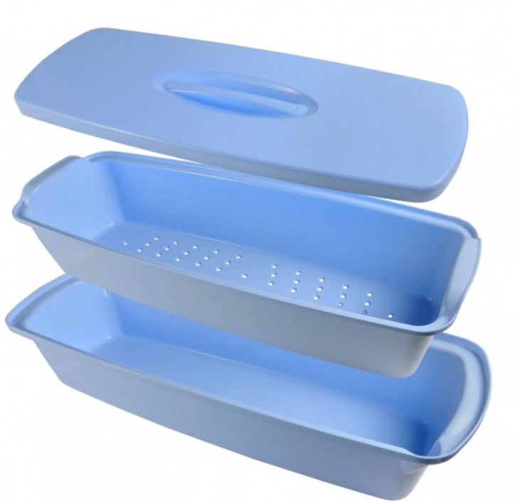 Контейнер представляет собой ванну с крышкой, внутри которой расположен перфорированный поддон. Форма и размер крышки разработаны с учетом эргономических требований. Конструкция контейнера позволяет легко закрывать крышку и обеспечивает ее плотное прилегание, что дает возможность сохранять необходимую концентрацию рабочего раствора. Контейнер изготавливается из нетоксичных, химически стойких полимерных материалов (поликарбонат, полипропилен), разрешенных к применению в изделиях медицинского назначения и устойчивых к длительному воздействию температур, используемых при разных режимах стерилизации паровым способом (автоклавирование).