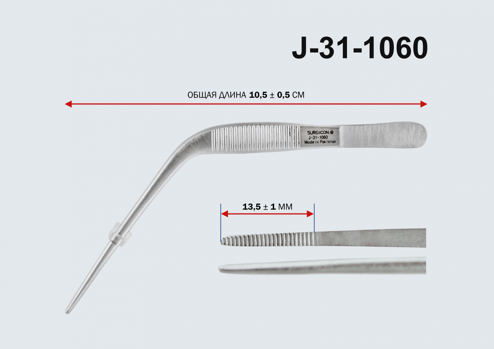 Тип: Пинцет ушной горизонтально-изогнутый анатомический, 110 мм (Пакистан)