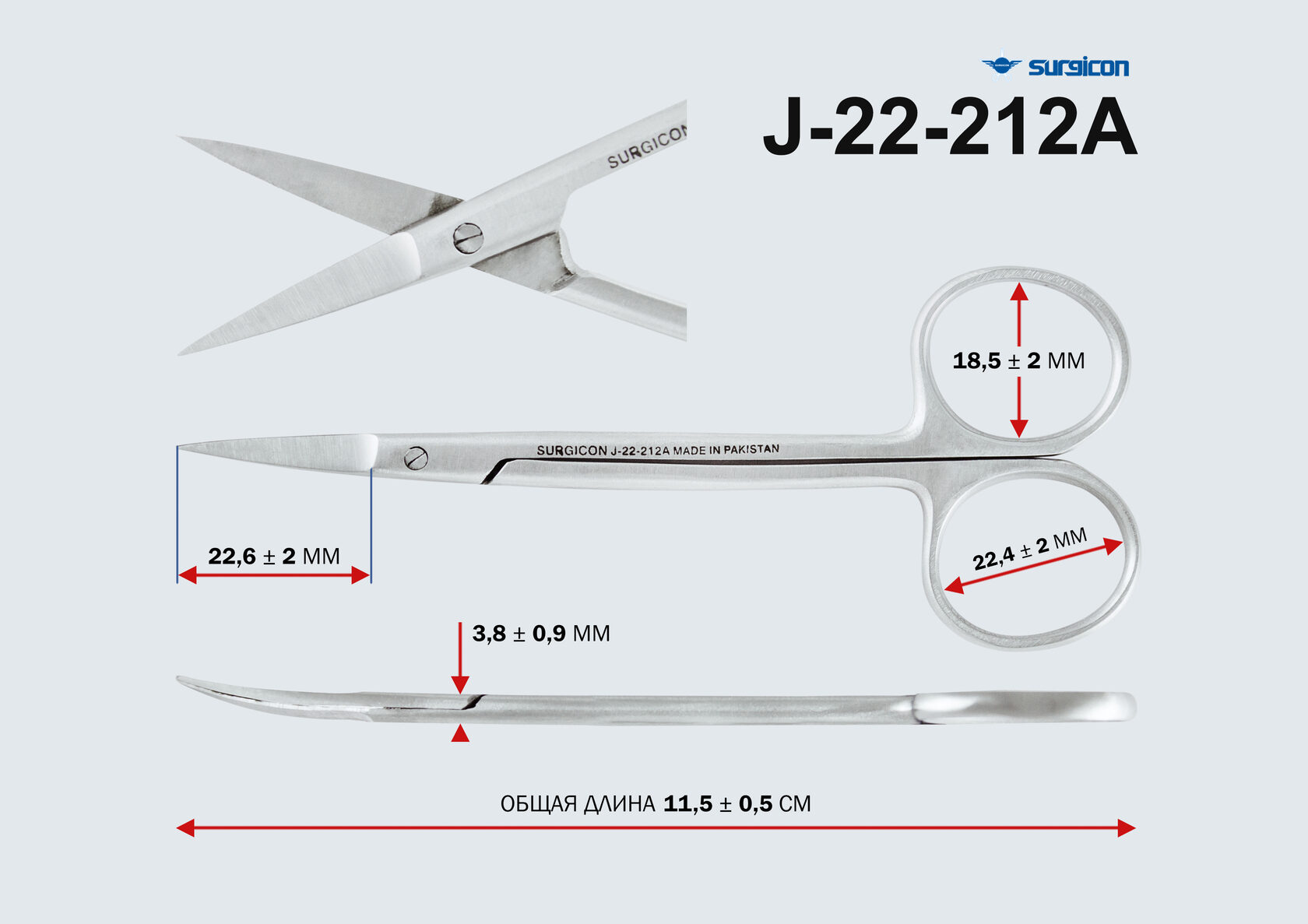 Тип: Ножницы глазные остроконечные вертикально-изогнутые, 115 мм Пакистан