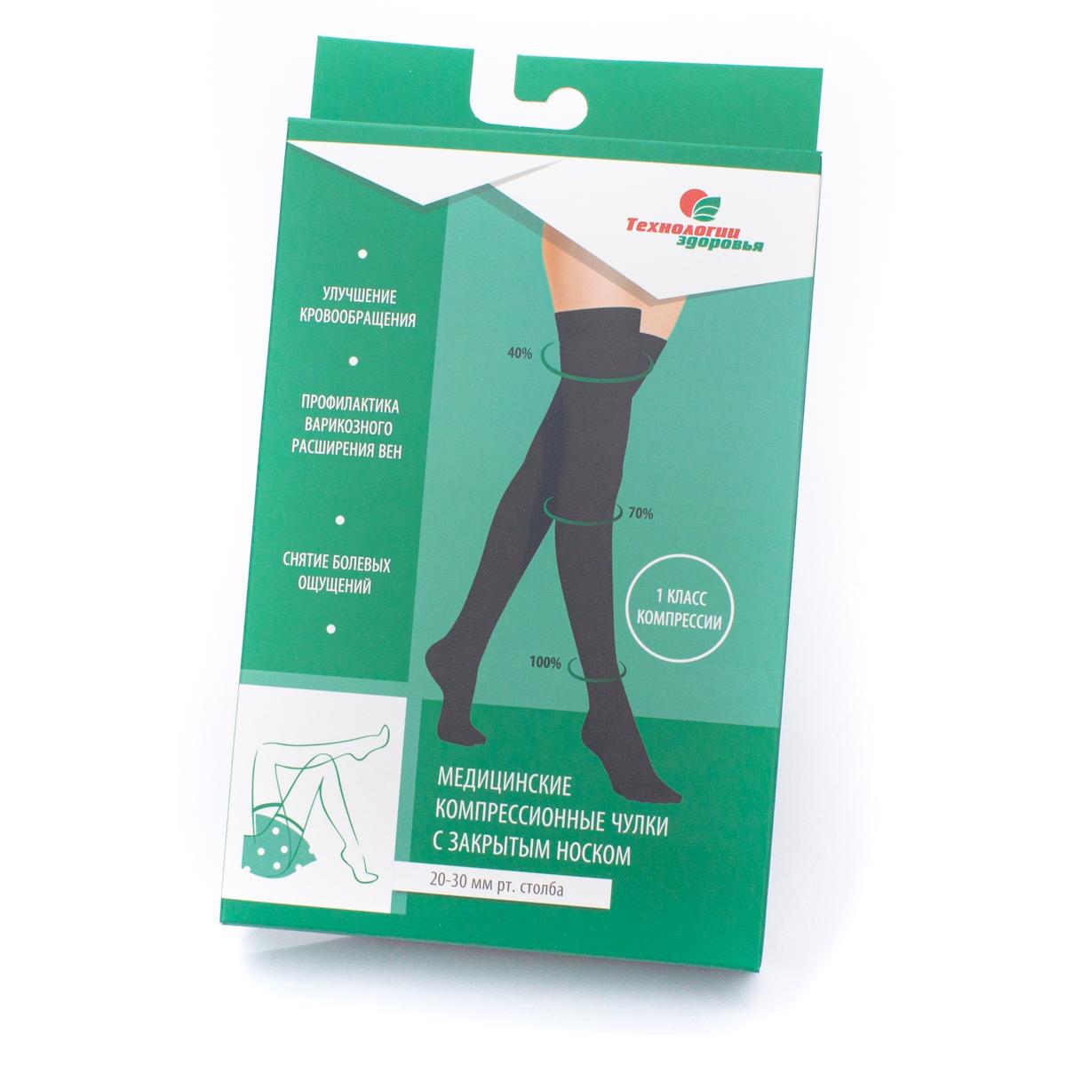 Компрессионные чулки с закрытым мыском 2 кл Технологии Здоровья черн р-р L