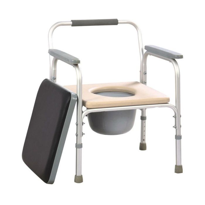 Стульчак выполнен из прочного, легко моющегося пластика и оборудован санитарной емкостью с крышкой. Емкость удобно переносится за ручку. Рама выполнена из анодированного алюминия и не подвергается коррозии. Кресло регулируется по высоте с помощью кнопочных фиксаторов на ножках конструкции (5 положений регулировки с шагом в 2,5 см). Ножки кресла оснащены противоскользящими наконечниками, не оставляющими следов на полу.